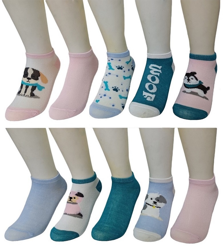 10pk doggie pattern ankle socks
