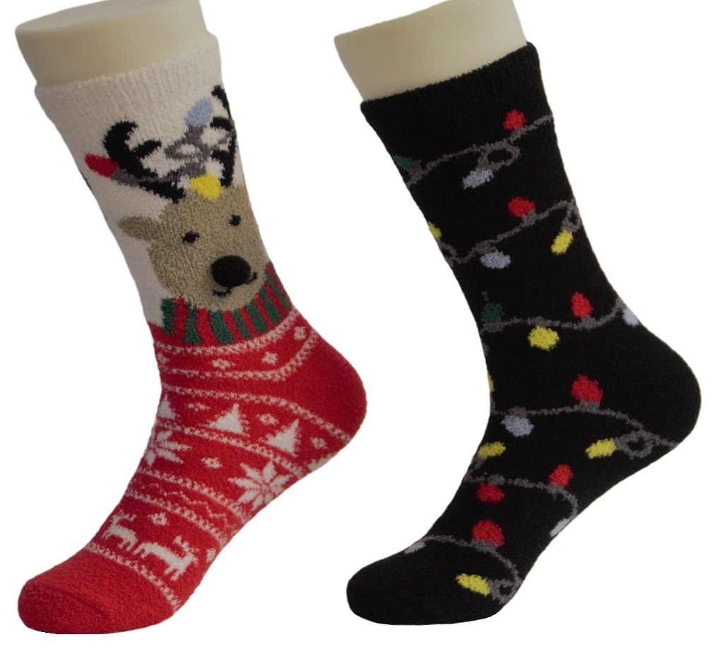 2pk Christmas reindeer pattern supersoft cozy crew socks